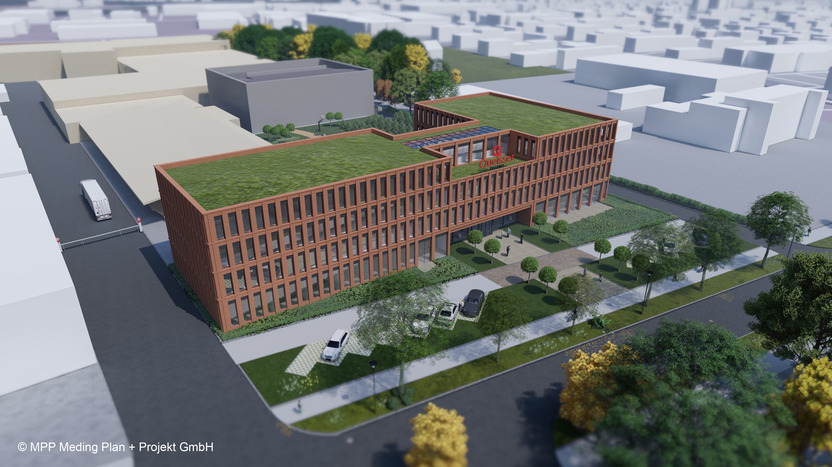Новата ни сграда ще бъде изградена в съответствие със стандарта за енергийна ефективност „KfW 55“, като поставяме силен акцент върху устойчивото развитие и използването на възобновяеми източници на енергия. Тя ще разполага със зелен покрив, централно отопление и обособени зелени площи във вътрешния двор. Освен това ще използваме електричество от 100% възобновяема енергия. Ще насърчаваме и електромобилността чрез зарядни станции както за електрически автомобили, така и за електрически велосипеди.